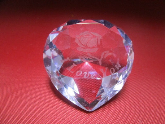"I Love You" Pink Crystal Faceted Paperweight [a3]