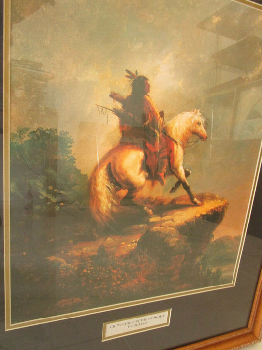 "Crow Chief on The Lookout" By ALFRED J. MILLER GLICEE PRINT FRAMED