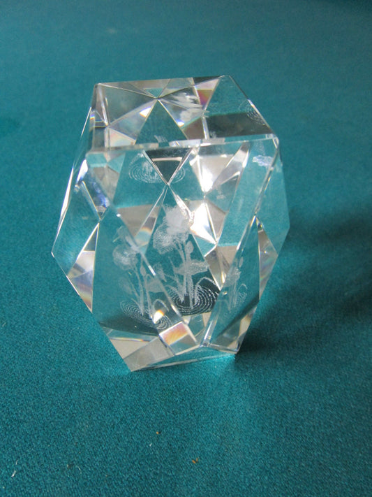 Prism Crystal Paperweight Diamond Cut Floating Flowers 3 1/2 [PPWC]