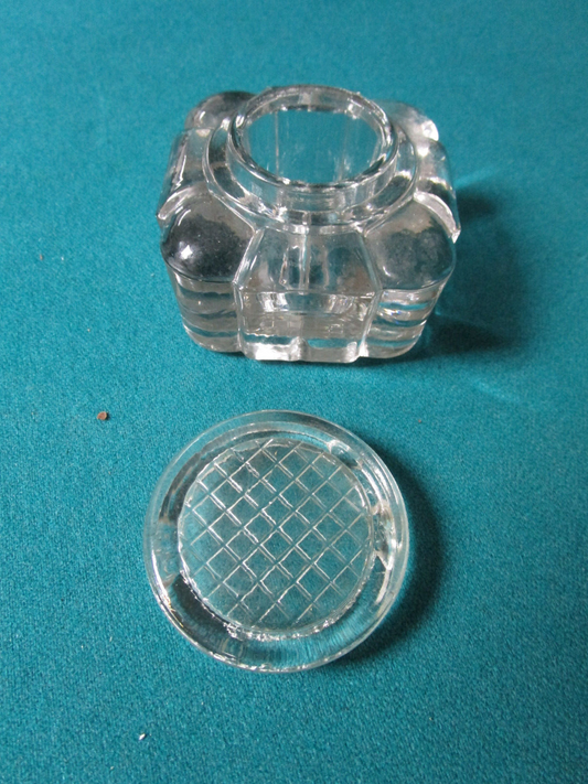 Glass Mid Century Ink Well Square 2 34" With Cover [*PPWEGT]