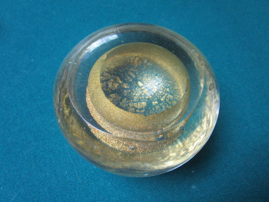 Gold Dust Round Paperweight 3 1/2" Diam X 2" Tall [PPWC]