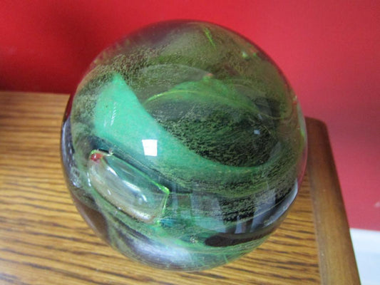 Green + Black Glass Paperweight "Kerry Crystal Ireland" [PPWC]