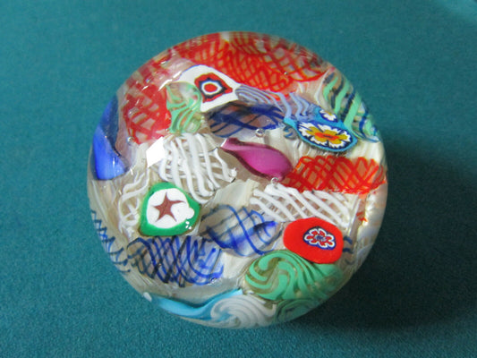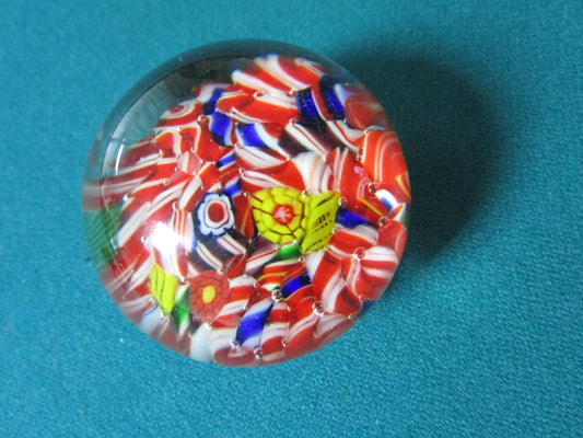 Small Murano Paperweight Red Blue Yellow 2 1/2" [PPWA]