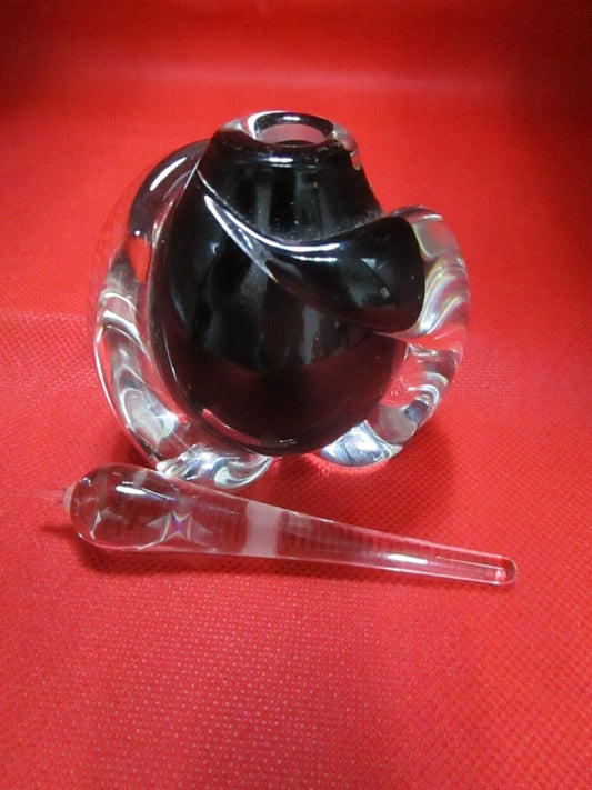 Signed Blodget Glass paperweight perfume black bottle 5" PPWA