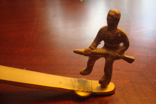 Bronze double cannon with a soldier, PAPERWEIGHT FIGURINE 5" X 11" ORIGINAL^