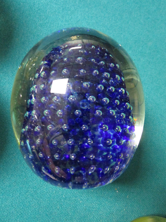 Crystal Egg Blue Bubbles Paperweight 4" [PPWC]