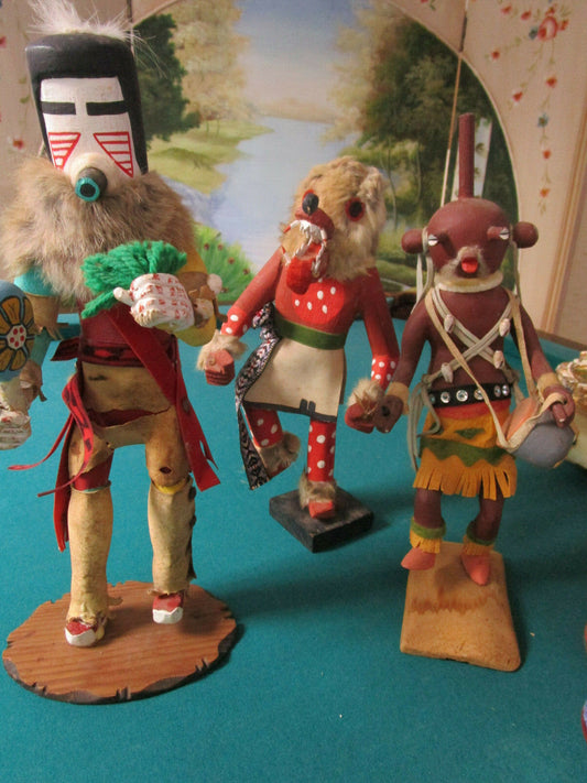 KACHINAS HOPI INDIAN SIGNED, WOLF, MUDHEAD, POWAMU DANCER - R. PINO FEATHER PICK
