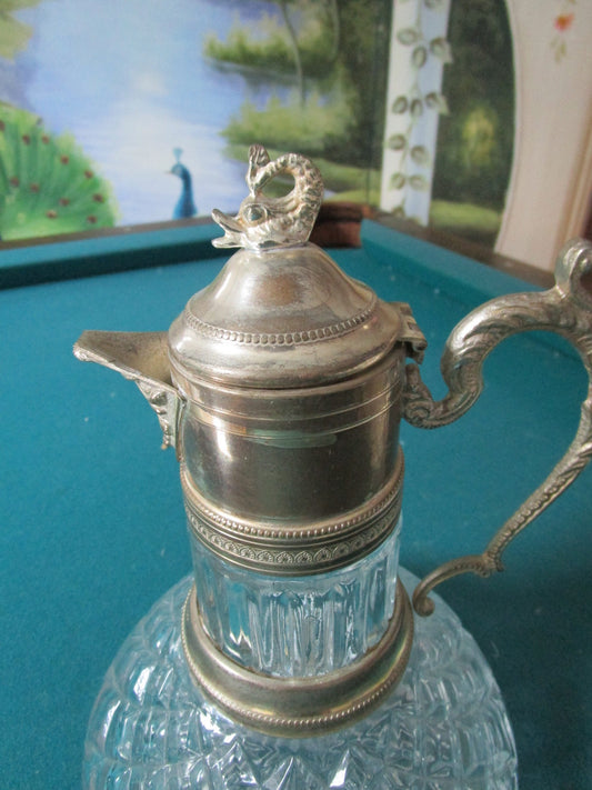 1920s Glass and Gilt Silver Plate Mounted decanter dolphin finial, 10 1/2" ORIGI