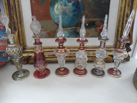 Egyptian Crystal Perfume Bottles, Gold Touches, Handmade,6/7"Tall