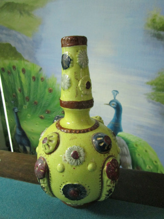ANTIQUE HUNGARY BOTTLE DECANTER CERAMIC YELLOW
