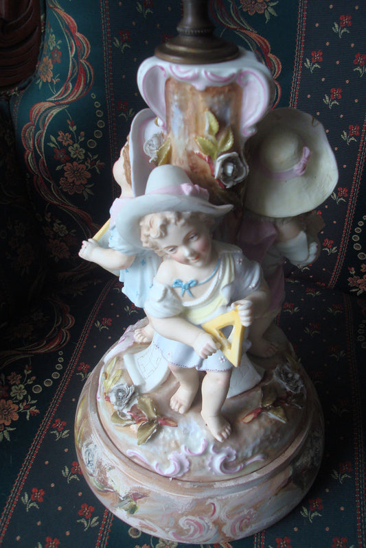 Antique German figural parlor lamp, 3 musician children, Art Deco 1850/99[2