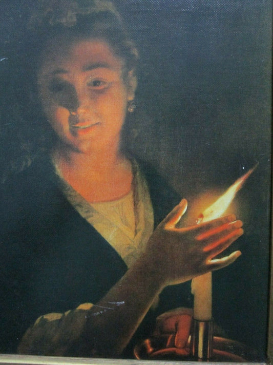 Woman with a Candle By Godfried Schalken - Print on board framed in Italy