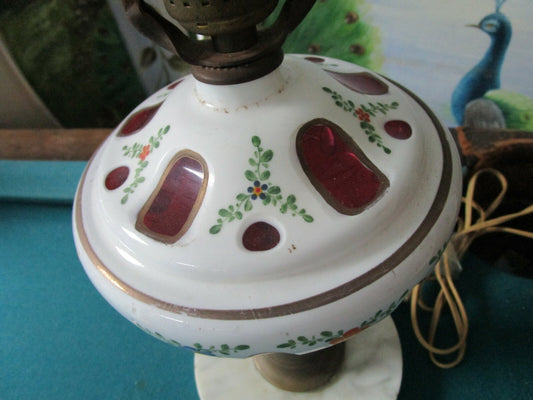 BOHEMIAN HAND PAINTED RUBY CAMEOS ELECTRICAL LAMP MARBLE VASE 13"