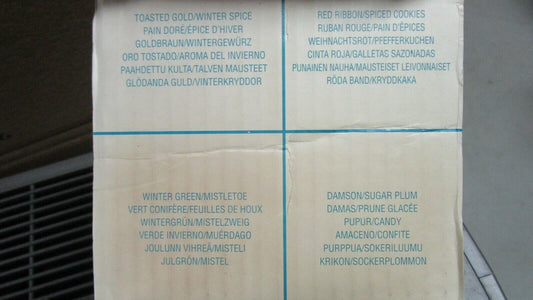 Partylite Scented 4 Candles Box Winter Green/Toasted Gold/Red Ribbon/Sugar Plum^