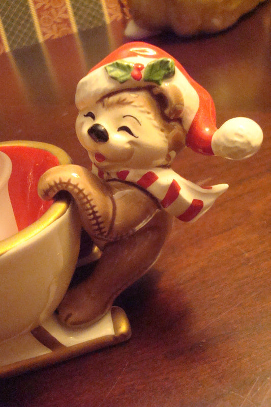 Fitz And Floyd Sleigh Candle Holder, Bear, Christmas Candy Dish Sleigh [93b]^