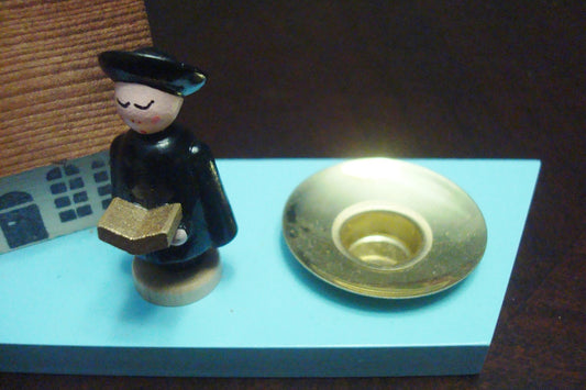 Wooden Carving candle holder Etch "Erzgebirgische Holzkunst" , priest [ANRI1