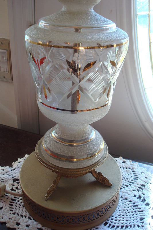 Glass Table Lamp With Electrical Timer, It Is Pressed Glass With Gold Decoration