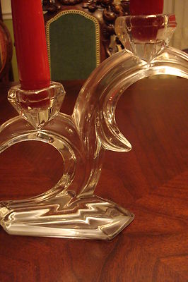 Art Deco French Clear Glass pair of candlesticks, 2 lights [GL16]