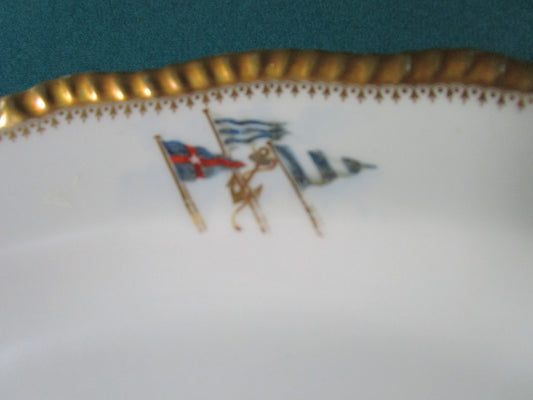 HIGGINS & SEITER NEW YORK - FRANCE BERNARDAU LIMOGES OVAL TRAY SHIP BANNERS