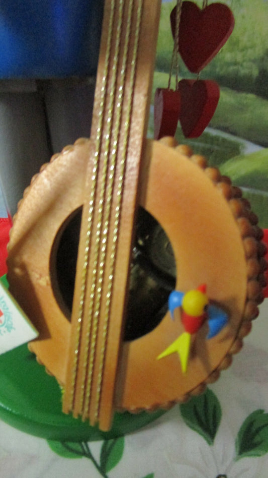 ERZGEBIRGE GUITAR SMOKER MUSIC BOX WIND UP, NEW SHOWROOM MODEL NO BOX 10"