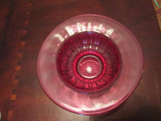 Red Ruby Rosso Italy Glass Vase Bowl Round, Marked "R"