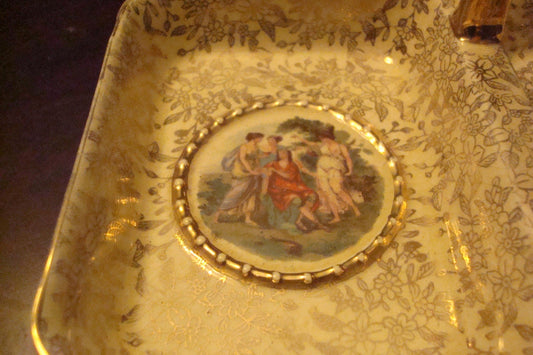 BONBON CANDY DISH YELLOW GLASS GOLD ETCHING [*5]