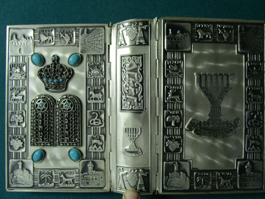 1968 HEBREW SILVER AND TURQUOISE BOUND SIDDUR PRAYER BOOK, H 5 1/2", W 3.5"
