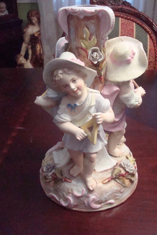 Dresden Germany figural candle holder "The Arts" painter, writer & music