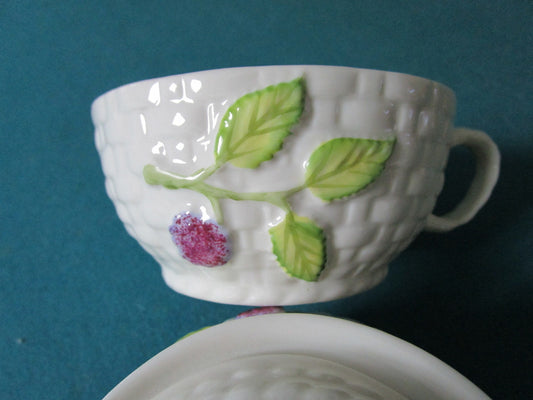 Belleek teapot for one and cup, strawberry design, 11th mark (green 2001/06)