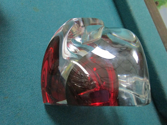 Val St Lambert France Signed Free Form Crystal Clear To Red Pair Candle Stick