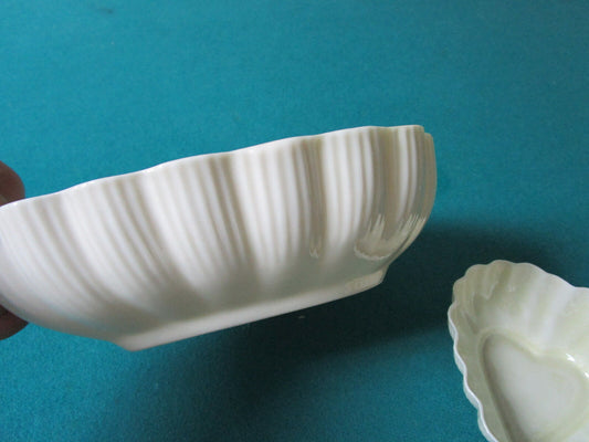 BELLEEK IRELAND 2 HEART SHAPED BOWLS 5" AND 7" GREEN STAMP [*BELLE]