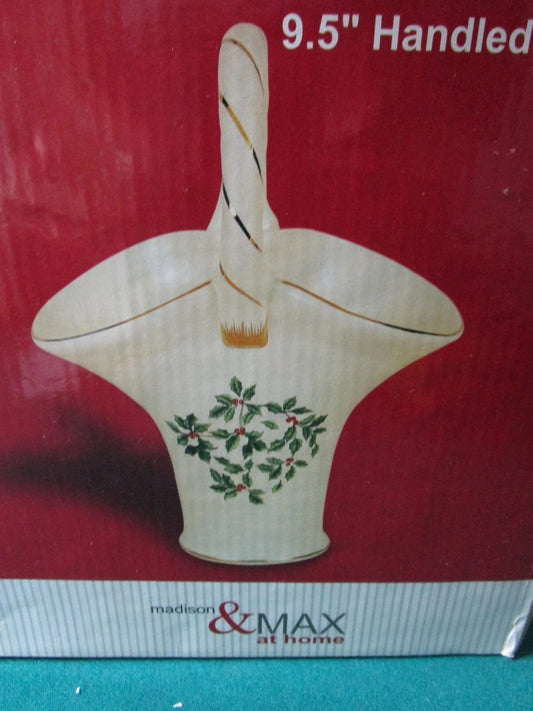 Madison & Max Christmas Ceramic Basket Nib 9" Orig
