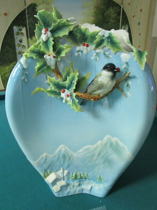 FRANZ PORCELAIN KATY IRELAND HOLIDAYS BEGINNING CHICADEE BIRDS VASE 15" ^^^