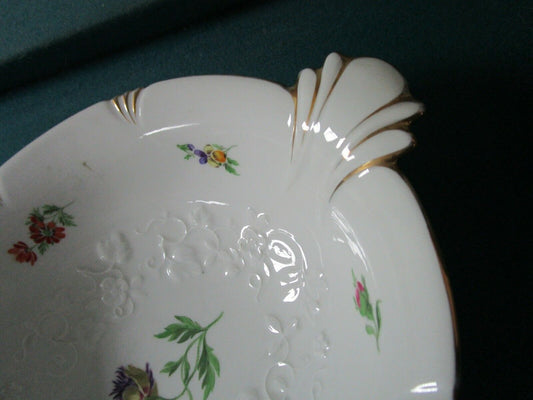 MEISSEN GERMANY CROSSED SWORDS FLORAL BOWL TWO HANDLE - 2 1/2 X 7 1/2 X 10"