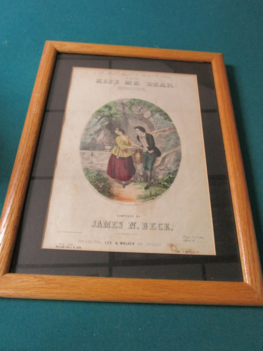 ORIGINAL SHEET COVER MUSIC 1850s FRAMED KISS ME DEAR - BELLES POLKA- BLIND GIRL.