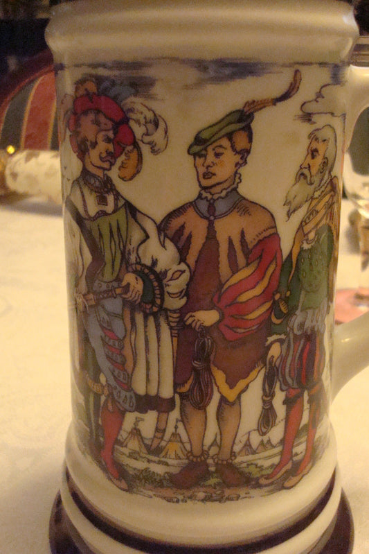 Vintage BMF BIERSEIDEL Ceramic transferware stein/mug, 7 1/2" tall