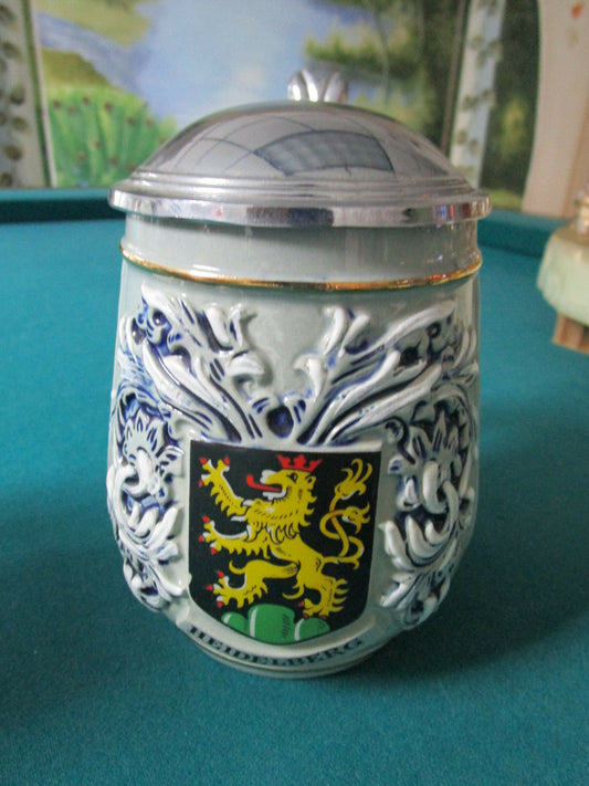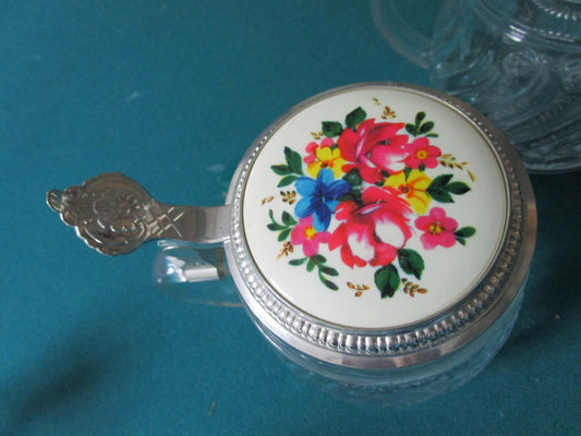 Original BMF 1970s of Bierseidel Beer Stein Glass ceramic/pewter Lid