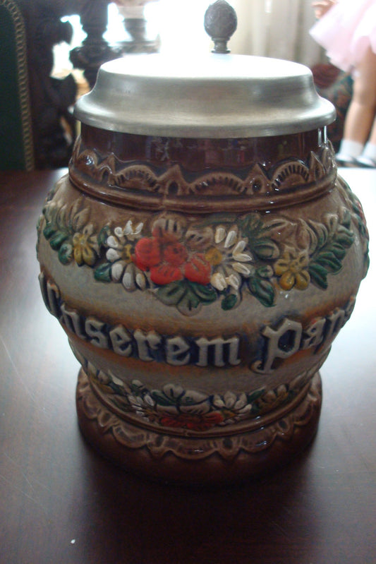 Original King Hand Painted Lidded Stein, Germany, "Unserem Papa" -Our Papa