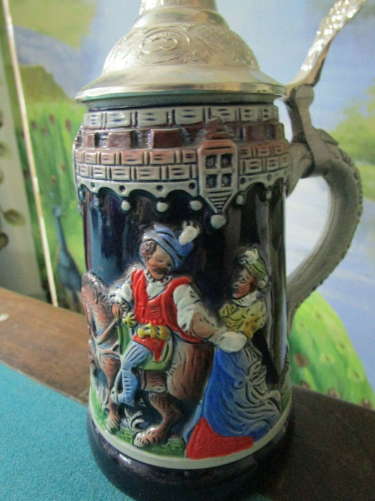 Unmarked Stein made in Germany, covered, pewter cover, 7" ORIGINAL