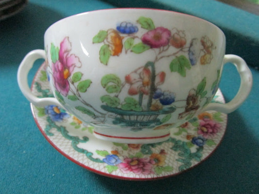CAULDON ENGLAND CONSOME SOUP CUP SAUCER VICTORIA PATTERN LACE AND FLOWERS c1904