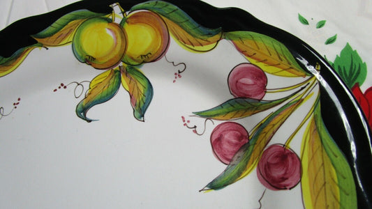 DERUTA ITALY DIP A MANO CERAMIC BOWL PLATES CUP SAUCER FRUITS BLACK RIM PICK 1