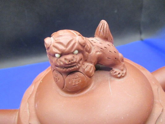 CHINESE Yixing pumpkin shape clay teapot with a foo dog on the lid