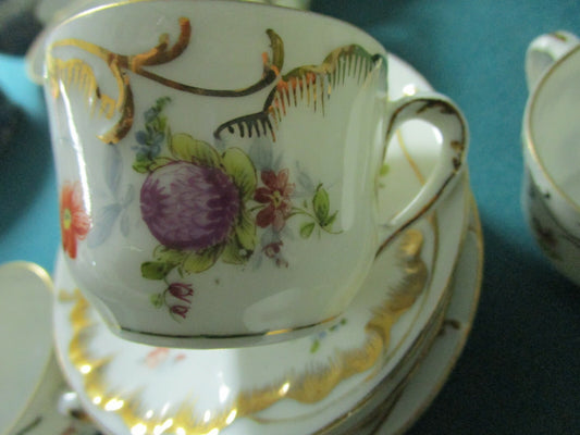 Saxonia Germany 5 Coffee Cup Saucers Antique Gold Flowers [95m]