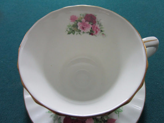 Tuscan England cup and saucer D2024, pink flowers bouquet, gold rim [58]