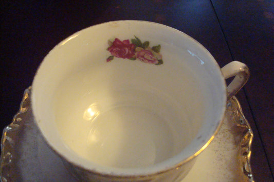Unmarked German cup and saucer, transfer roses and gold RARE [91]