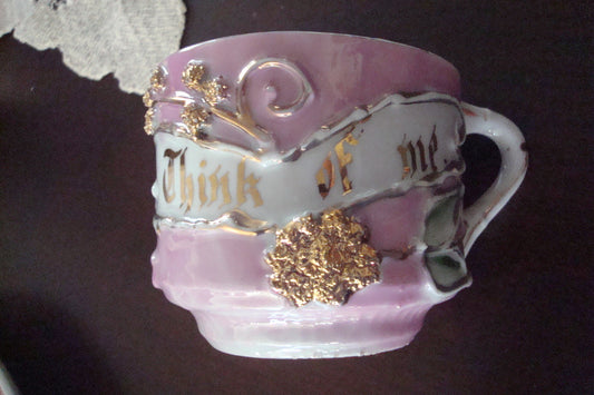Mid Century GERMANY mustache COFFEE mugs, pink and gold with inscriptions [50C]