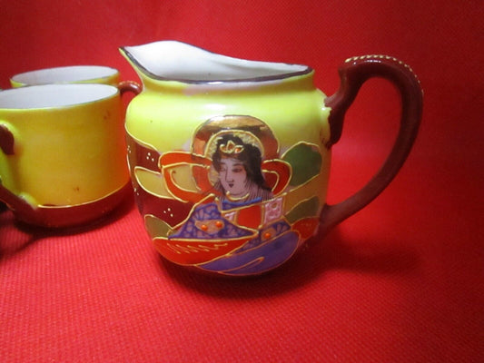 Occupied Japan Moriage coffee set Geisha decor creamer cups [50J]