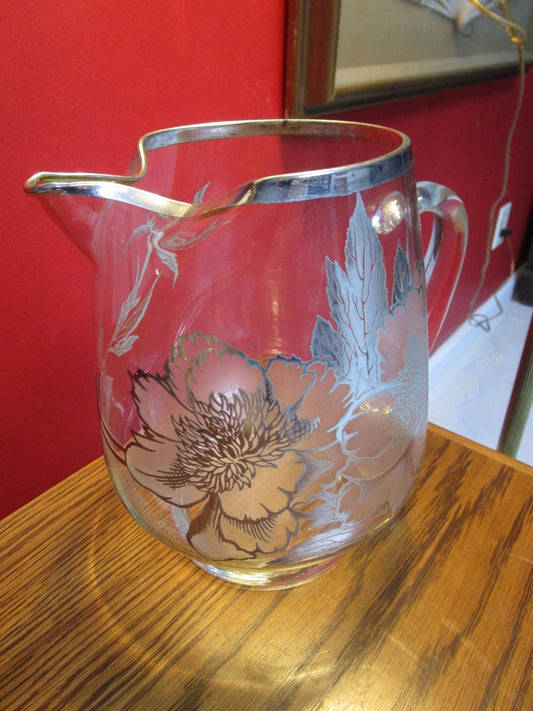 Glass Silver Overlay Pitcher, Gorgeous! [a*5