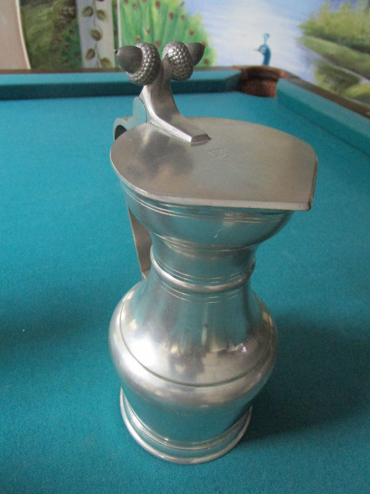 Sigg Zinn Frauenfeld Pewter Lidded Pitcher 9" ACCORNS COVER GERMAN