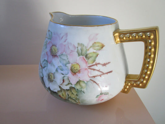 Felda 1900s China Porcelain Pitcher Germany Dogwood Flowers And Gold Original